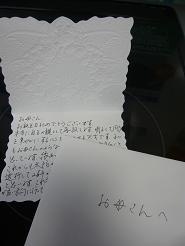 今日は家の大殿マーマの誕生日です。81歳になりました。 母は透析を25年続けています。本当に週3回ですが、大変な事だと思います。天気関係なく元旦休日関係なくです。もちろん命にかかわる事なので仕方がありませんが、大変な事だと本当に思います。 これも父が元気でいてくれるので出来る事です。家族が仲良く良い関係でいる事は信頼関係を築きそして相手の立場を思いやる事が大切だと思います。 私は嫁いで早28年になりましたが、家族の絆を嫁いで改めて再認識しました。本当に良かったと思います。 今日は母に充てたラブレターを書きました。照れますがちょこっと書きます。 お母さん お誕生日おめでとうございます。 本当に自分の親として、尊敬しています。明るく周りを華やかにし、心を和ませる天才です。 私もお母さんの様な素敵な女性でありたいと思っています。 縁あって母娘になった私たちです。これからも太陽の様なお母さんでいて下さい。 透析して25年の歳月が流れましたが毎回大変な事だと思います。これも辛い試練ですが、お母さんの『生きる力』が良い方向に向かっていると思います。 家族で支えて行きますので、いつまでも元気で長生きして下さい。 お父さんと仲良くね。おめでとうございます。 本当に長生きしていつまでも総監督お願いしたいです。 お祝いは家族が全員揃う来月にする予定です。 パナソニック社内製品従業員購入制度ご利用のお客様は、 パナソニック優秀店3年連続入賞の当店へご用命下さい。 県内のお客様のみ 東北震災の振り込みのお知らせなのですが、入力するたび『文字数が・・・』と言うコメントがPCに出てしまいます。容量の問題で入らないようです。ご協力頂ける方は以前のブログをご覧ください。決して協力を辞めたのではございません。これからも協力は惜しみなくさせて頂きます。 復興地の方々を応援なさる方 ぽちっと愛の手をお願いします。 ↓↓↓
