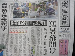 ニュースでも放送されますが、山梨県は連日38℃を超えています。本当に暑いです。 お陰さまでエアコンも大忙しです。 連日お客様からのお問い合わせも多く、取りつけるのも大変です。 昨日も朝一番にお客様からお電話がありました。『エアコンを付けたけれど、動かない』との事。3代目が早速出かけて行きました。すると20年以上前の物でした。 お客様も新しいエアコンを購入との事でパナソニックの最上位機種Xシリーズをご購入です。 3代目が丁寧に説明して・・・『じゃあ、お勧めの物頂きます』嬉しいですね。私共を信用して下さり嬉しいです。 お部屋でも熱中症になりますから、エアコンや扇風機を上手に使って熱中症にならないように十分皆さまも気を付けて下さい。 今月のイベントは 7月13日パナソニック研修生による、『夏休み自由研究の手助け』イベント 7月16日『個人レッスンIH料理教室』 7月17日美しく健康であるために『ウォーキング教室』 7月26日『お耳の聞こえ相談会』 個人的な予定は・・・ 7月11日パナソニック奥様・女子従業員様の勉強会(私が出かけると社長が嫌がるので次女が行くかもです) 7月12日社長はパナソニック4役会議と、夜7時に太陽光のお見積り・私は韓国語のお勉強と夜は無尽会でお出かけ^^ 7月13日社長は夜無尽会 7月17日社長はまたまたパナソニック4役会議 7月24日社長は中部PS会の会議でお出かけです。 7月29日家のパナソニック研修生のちょこっと早い送別会をします。 多分今月もあっという間の1か月だと思います。 暑いので店の前に置きました。うちわです^^ 今日も笑顔で^^ 昨年9月から電気料金が値上げになりましたが、 通常の料金体系よりオール電化のご家庭のほうが 電気料金がお得なことは変わりませんので 今だからこそ、オール電化をお薦めします。 オール電化・リフォーム・太陽光発電のことなら何でも お気軽にご相談ください。 安心・丁寧・迅速・スタッフ充実 太陽光発電・オール電化・リフォーム・補聴器 高級オーディオ・シアタールーム 『あなたの街のでんきやさん』 ぽちっと愛の手をお願いします。 ↓↓↓ 毎日暑いな~と思う方 ぽちっと愛の手をお願いします。 ↓↓↓ 今日も笑顔で^^ 太陽光発電・オール電化・リフォームの事なら何でもお気軽にご相談ください。 愛の手を^^ ↓↓↓ぽちっと愛の手を^^